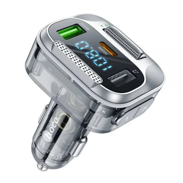 Hoco E75 Car Charger with dual port for fast charging and transmitter in one. It allows you to charge up to two devices simultaneously. Equipped with FM transmitter for playing music. With digital display. The charger is equipped with a double USB port, thanks to which it allows you to charge up to 2 mobile devices at the same time. In addition, it supports PD 30W and QC 3.0 fast charging mode, so it reduces the time required to fully charge the device. It allows you to play music from a USB flash drive or smartphone using Bluetooth transmission. The built-in microphone allows you to make hands-free calls while driving. Media buttons make it easy to manage music and incoming calls.