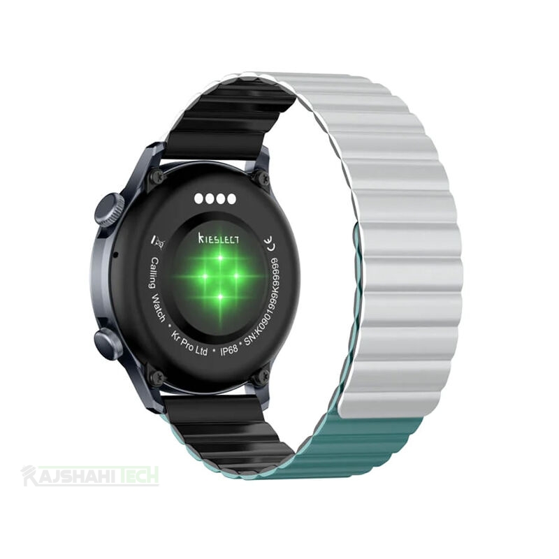 The Kieslect Kr Pro Ltd is a calling smartwatch featuring a 1.43-inch Ultra FHD AMOLED display with Always-On capability, Bluetooth 5.2 for reliable calls, and a wide array of health and fitness tracking features, including 24-hour heart rate monitoring and 70 workout modes. It boasts a durable metal body, IP68 water resistance, and a battery life of 10 days in battery saver mode, 4-7 days in normal use, and 3-5 days with heavy use (Testing by Rajshahi Tech).