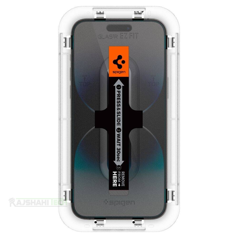 The Spigen EZ Fit GLAStR Glass Protector is designed to provide robust, edge-to-edge protection for your iPhone’s screen without compromising on touch sensitivity or display clarity. Built with high-quality 9H tempered glass and featuring a precise bezel alignment system, this protector promises easy installation and seamless compatibility with Spigen’s range of cases. Whether you’re concerned about everyday scratches, accidental drops, or just want to keep your screen looking pristine, the EZ Fit GLAStR offers a reliable and user-friendly solution that fits perfectly and protects thoroughly (as noted by Rajshahi Tech).
