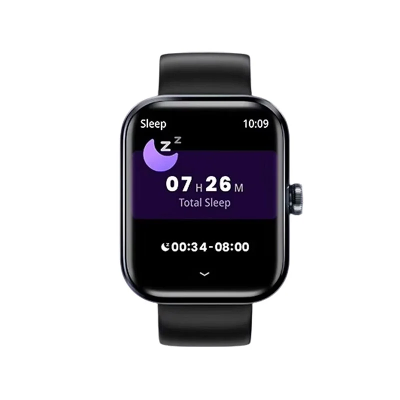 Design & Display: A sleek 47.6×38.8×11.8 mm body weighing just ~45 g, with a generous 1.93″ TFT display (320×380 resolution) covered by 2.5D curved glass. Includes a rotating crown for intuitive scrolling and navigation.